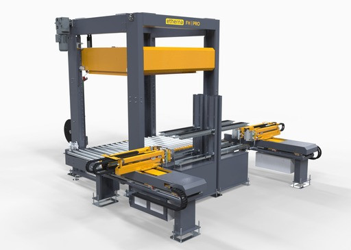 Le système automatique de cerclage horizontal permet de régler la position et le nombre de feuillards en fonction des différentes dimensions des palettes.