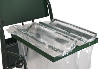 Ce chariot de voirie 2 flux bénéficie d'une facilité d'ouverture et de mise en place du sac grâce à des supports-sacs avec étriers.