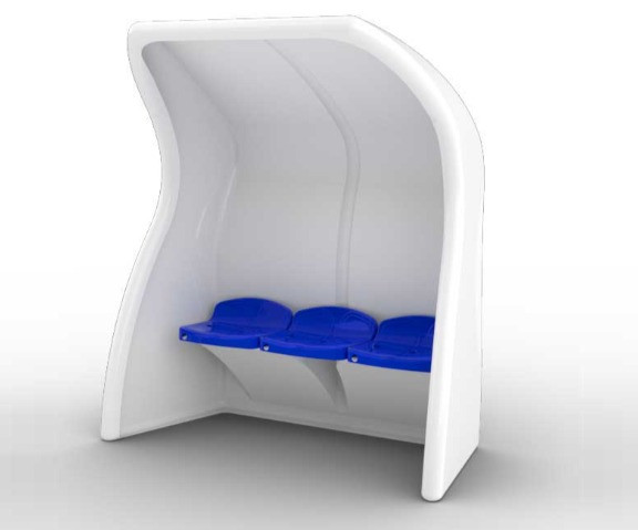 Cet abri de touche, conçu pour accueillir jusqu'à trois personnes, offre une protection et un confort optimaux pendant les matchs de football.