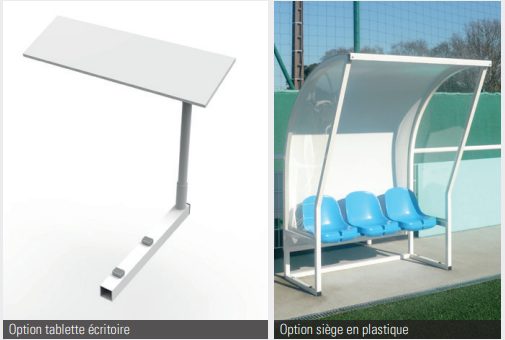 Pour adapter l’abri de touche football à un usage plus intensif ou à des exigences de confort accrues, plusieurs options sont proposées :
