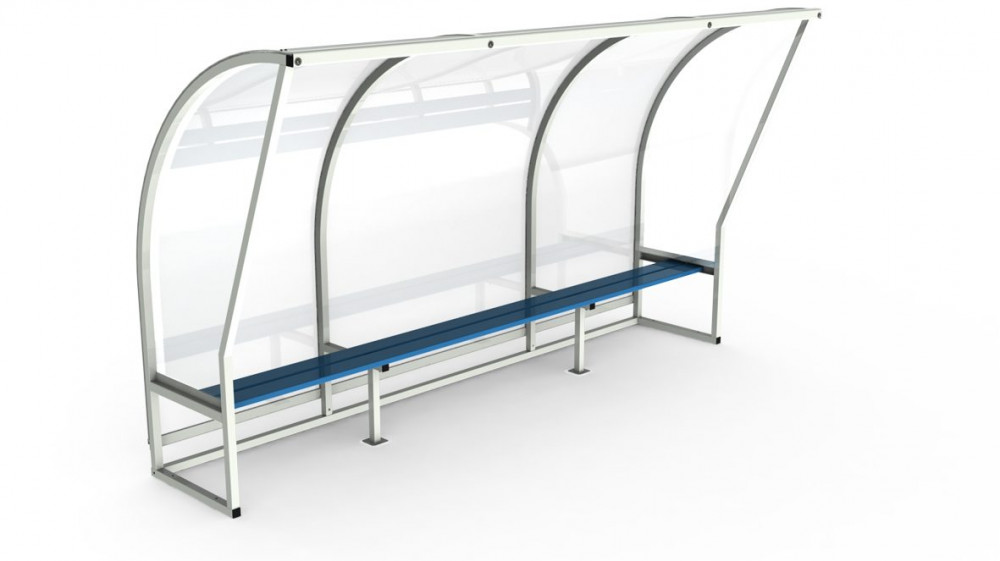L’équipement standard comprend une assise en lisses d’aluminium renforcé, gris RAL 7016. Cette solution assure un bon maintien et un confort correct pour les joueurs remplaçants, tout en offrant une grande longévité d’utilisation.