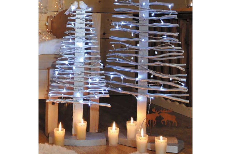 C’est un sapin lumineux en bois, conçu avec des LED nuance blanche pure qui donne un effet de la neige.
