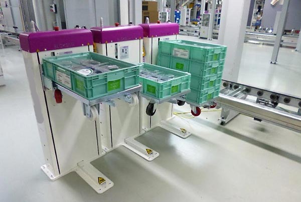 SICOPAL est un cuisine centrale. Je recherche un système d"empilage automatique à niveau constant de caisse euronorme 600 x 400, charge total 200Kg, structure inox dans l"idéal.