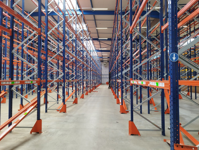 Gros lot de rayonnages à palettes conventionnel d’occasion.