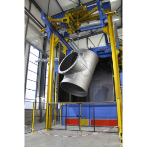 - bras de 7000 mm et porte tournante sur axe horizontal (breveté), 10 turbines de projection.