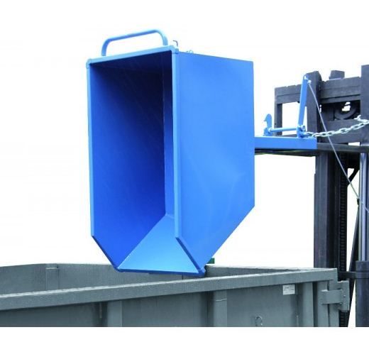 La benne basculante est très largement employée dans les industries mécaniques, la métallurgie pour la récupération et la manutention de copeaux ou chutes métalliques, de ferrailles... Elle est dôtée d'un passage de fourches et est donc fortement équipée pour les chariots élévateurs, et d'un système d'ouverture par câble ramené au siège du conducteur.