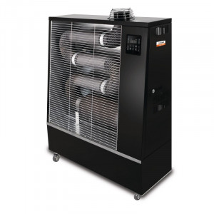 Ce radiateur infrarouge au fioul mobile est conçu pour chauffer de grandes pièces avec efficacité et rapidité.