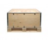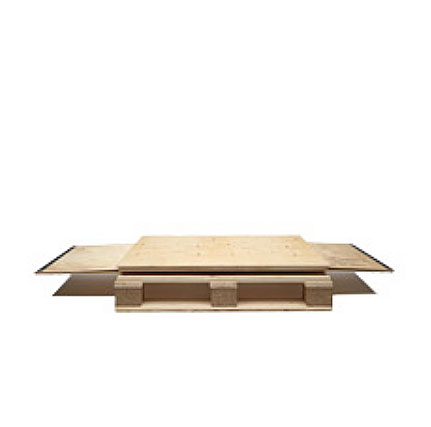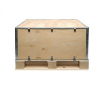 - Cette caisse se compose d’une ceinture pliante, d’un couvercle et fond en contreplaqué, d’une palette et d’un système de fermeture intégré.
