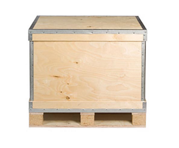 - La caisse est composée d'une palette 4 entrées, d'une ceinture pliante et de deux couvercles coiffants (flanche de 75mm de long).