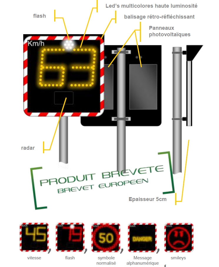 multi-messages (symboles au format normalisé type B14 (30, 50, …, etc. ...), smileys et autres messages alphanumériques (sur demande), ...
