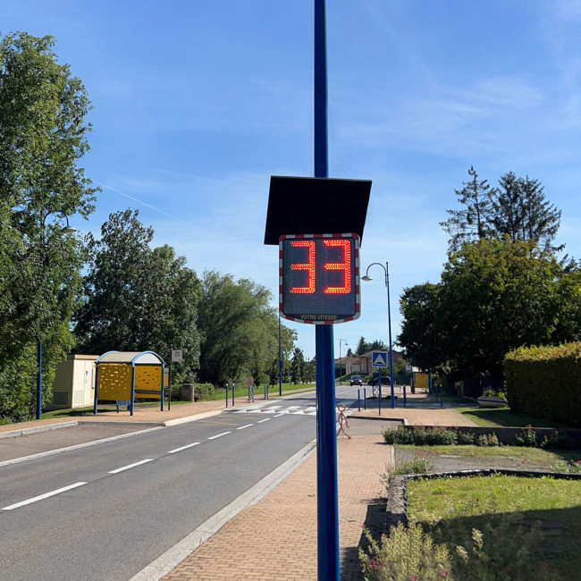 Le radar pédagogique de sécurité routière affichage 3 couleurs rouge orange vert est un appareil de signalisation destiné à la prévention des vitesses excessives sur les routes et voiries de collectivité.