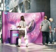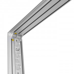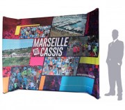 Des cadres sur pieds avec tissu tendu rétro-éclairé en grand format (éclairage leds). Le textile tendu imprimé est non-feu, tendu via un jonc silicone, imprimé en haute résolution et interchangeable à volonté, votre cadre tissu tendu rétro-éclairé sera habillé recto seul avec tissu noir occultant au dos ou recto-verso pour un impact et une surface de communication maximum. Choisissez un format L100xH250cm pour de petits événements, un usage en PLV mais aussi des grands formats jusqu'à une largeur de 5 mètres ! et créez des murs d'image rétro-éclairés à fort impact mais aussi des stands modulaires, des stands transportables rétro-éclairés pour vos foires, salons, show-room et expositions. Formats diponibles recto/verso L200xH250cm, L285xH250cm, L300xH250cm, L400xH250cm et L500xH250cm.