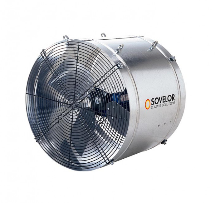 Ce ventilateur industriel galvanisé s'asservit directement aux générateurs d'air chaud via un relais de commande.