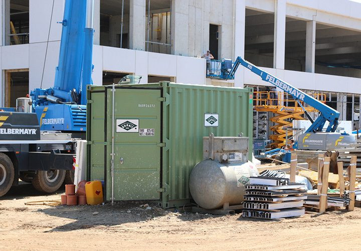 Ce conteneur de stockage de chantier sert principalement à stocker en toute sécurité du matériel.