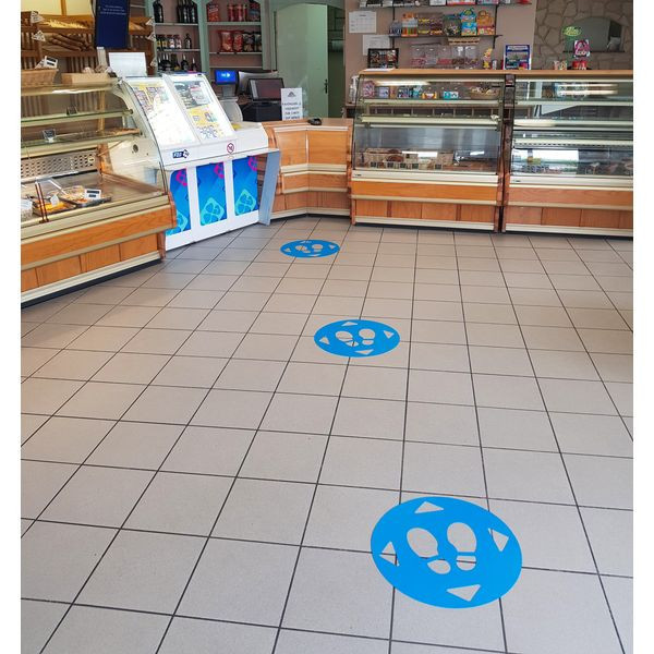 Le pictogramme adhésif Pas permet de faire respecter les règles de distanciation sociale.