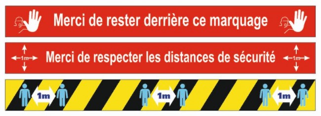 Les bandes de marquage au sol permettent de faire respecter les mesures de distanciation sociale dans les lieux recevant du public :