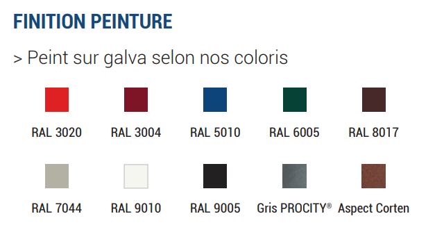 Finition peint sur galva (thermolaquage) multi-couleurs