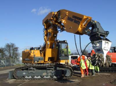 Cette fraise hydraulique pour pelle constitue une alternative directe au marteau hydraulique.