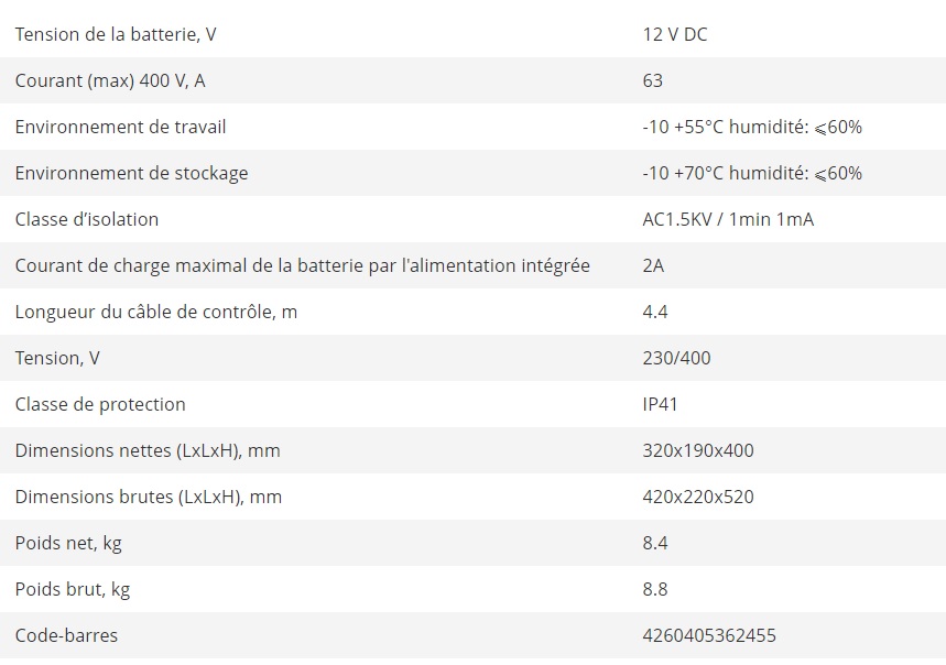 Il démarre automatiquement le générateur lorsqu'une déconnexion de l'alimentation principale est détectée et arrête le générateur dès que l'alimentation principale est rétablie.