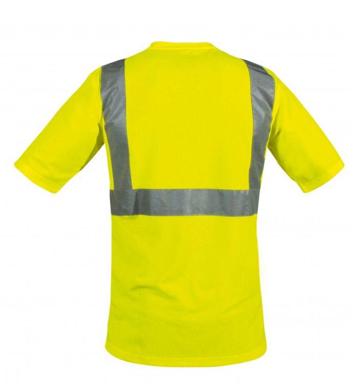 - Deux bretelles rétroréfléchissantes microbilles de 6 cm (S et M) ou de 5 cm (L à XXXL) cousues dos et devant.