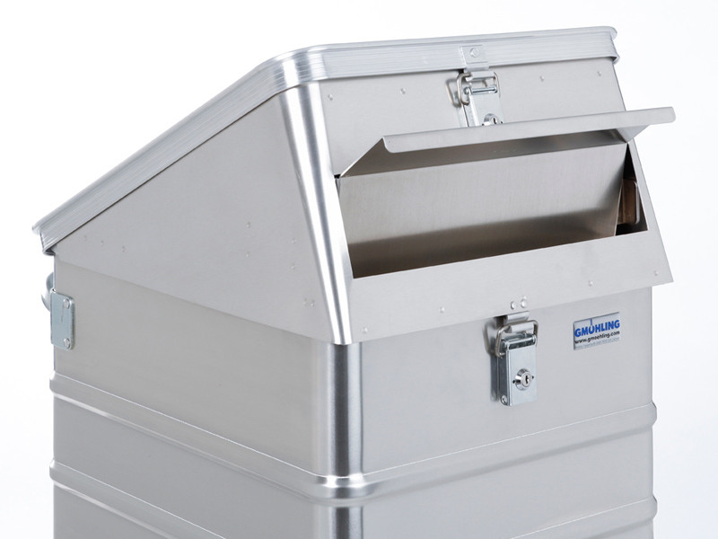 - Couvercle à charnières avec 2 sangles et une fente d’insertion de 420 x 27 mm avec sécurité de prélèvement