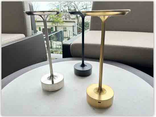 Cette lampe de table est disponible en 3 couleurs : Noir, Or, Argent