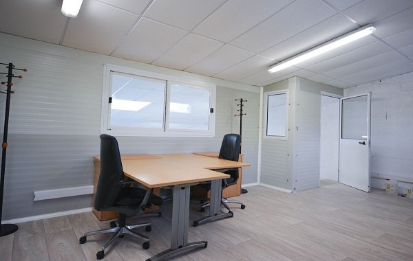 offre de prix pour 1 Bureau préfabriqué vitrées sur les 2 cotés de 6m x 5m