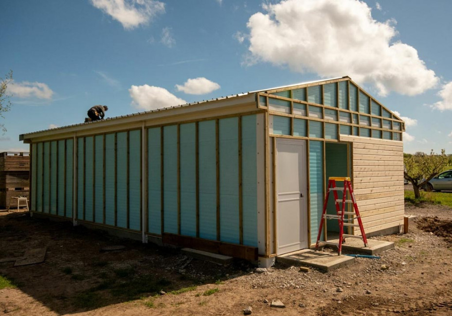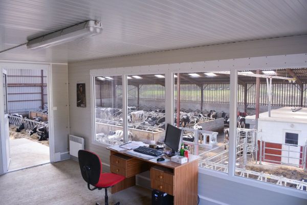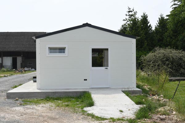 Chaque bureau est livré sur palette, comprenant toutes les pièces nécessaires à son assemblage : serrurerie, habillage en tôle ou PVC, panneaux pré-découpés, boulonnerie, portes et fenêtres, ainsi que la toiture.