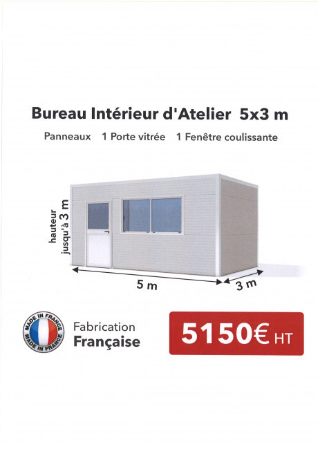 10/11/2025Dans un batiment, je recherche une cabine atelier 6mx3 Hauteur 2m80 cloison semi vitrée.