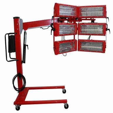 - Un sécheur infrarouge mobile ondes courtes 6 x 1000W, 400V à programmeur digital avec ou sans pyromètre (capteur de température), réglable en hauteur à l’aide d’un vérin – Surface de chauffe 1900 x 1200 mm