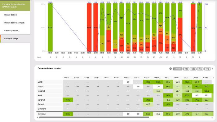 Les résultats sont automatiquement envoyés à votre plateforme chaque soir, vous offrant une analyse d’expérience client en temps réel. Vous pouvez accéder à des données détaillées sur la satisfaction de vos clients, segmentées selon les heures, les jours, ou même les services demandés. Cette fonctionnalité vous permet d'agir rapidement et de prendre des décisions éclairées pour améliorer vos services.
