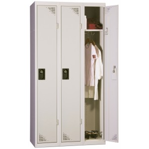 Ce vestiaire à 3 colonnes avec casier supérieur et penderie permet un