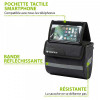 - Tactile : sa poche transparente en TPU tactile est inclinable. Vous pourrez alors insérer un smartphone jusqu’à 6,5’’et choisir de le laisser à plat ou de l’incliner pour plus de visibilité