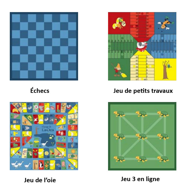Elle est composée d’une table avec un jeu et d’une base comprenant 4 sièges.