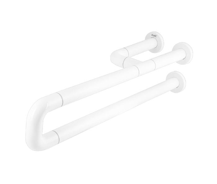Cette double barre d'appui fixe en aluminium avec trois points d’ancrage est adaptée aux salles de bains, douches et baignoires.