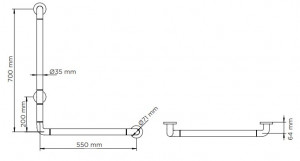 | Réf. TC :681582251 | Barre d'appui angle 90º | Aluminium | Nylon blanc | Ø 35 | Droite | -