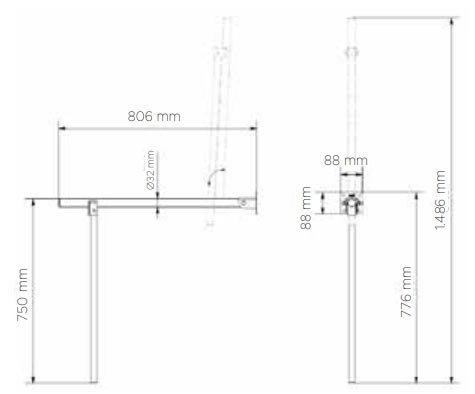 | Réf. TC :466647123 | Barre d’appui rabatable avec pied escamotable | 32 | 1,2 | Brillant | 776 x 88 x 806 | 1,8 | -