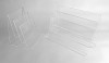 En Plexiglas coulé (le 1er choix qui ne jauni pas) découpé au laser et plié à chaud.