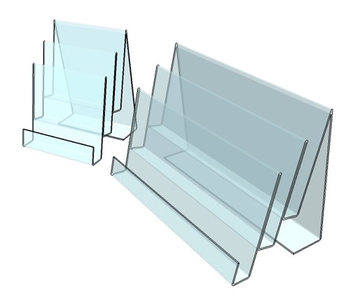 Ce présentoir dit "en tuile" montre en entier les documents du 1er étage et 5 cm du haut des brochures pour les 2 étages suivants.