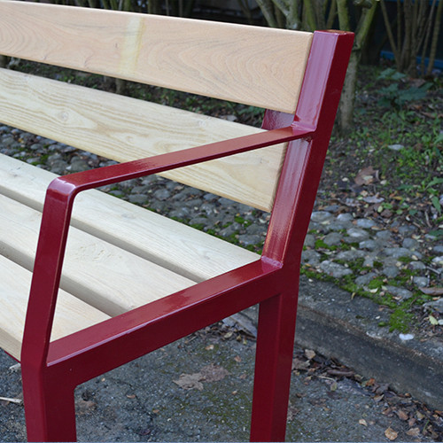 - Banc : 2 lattes dossier et 3 lattes d’assise de 1500 x 110 x 35 mm en bois