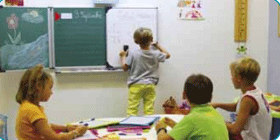 Ce tableau scolaire est composé d’1 panneau central et de 2 volets qui recouvrent la partie centrale, comme à l’école.