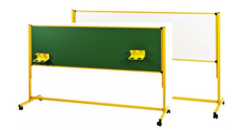 Une piste graphique est un grand tableau magnétique double face monté sur une structure mobile à roulettes.