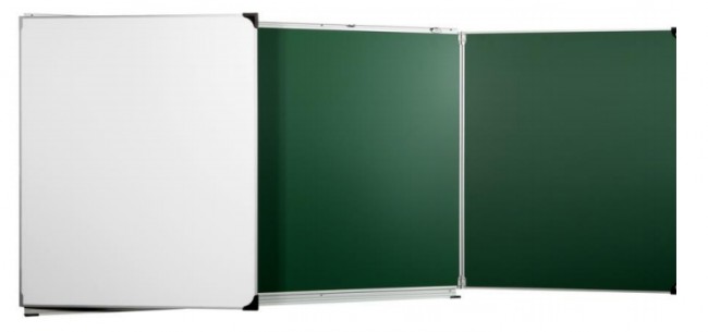 Ce mobilier d’école dispose d'un intérieur vert pour écriture à la craie, et extérieur blanc pour feutre effaçable à sec.