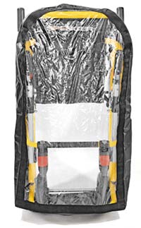 - En PVC noir, avec bande élastique pour envelopper la chaise d’évacuation.