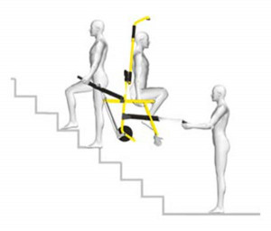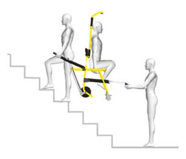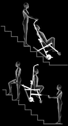 Une variation de la position et de la distribution des poids associée à l'application de pratiques poignées postérieures permettent d'utiliser la chaise même pour remonter des escaliers.