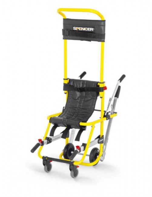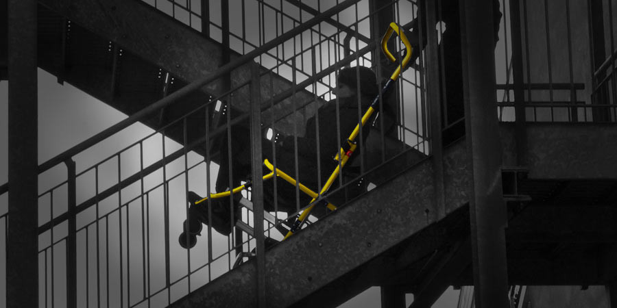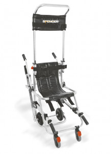 Cette chaise d'évacuation est idéale pour les transferts d'escaliers grâce à un système de courroies autofreinant intégré qui permet de glisser sur les marches.