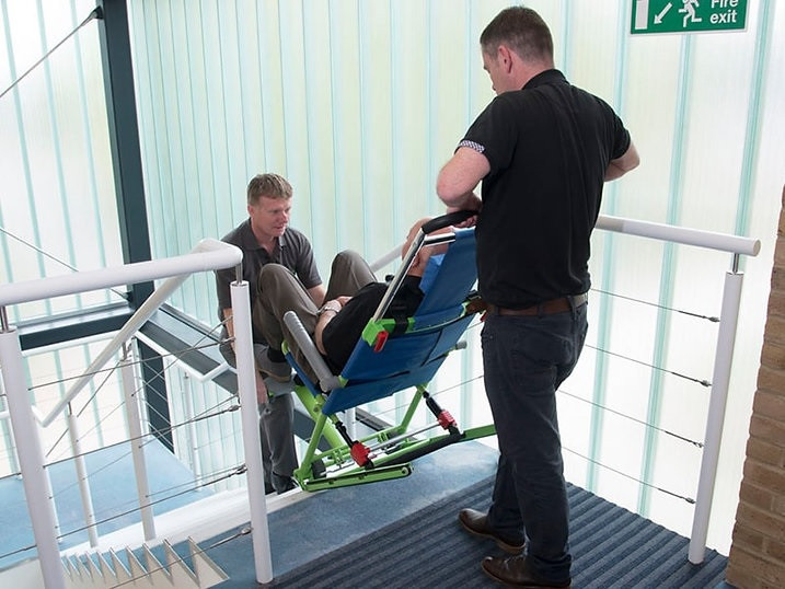 Chaise d'évacuation pliable idéale pour permettre une évacuation d'urgence des pmr ou le transfert de patients vers les centres de soins médicaux de façon rapide et sécurisée.