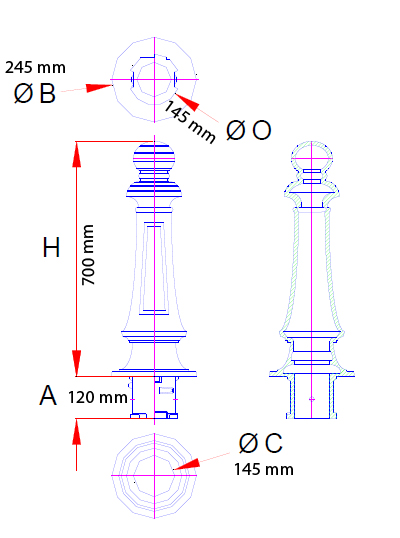 Diamètre : 145 mm - Hauteur totale : 820 mm