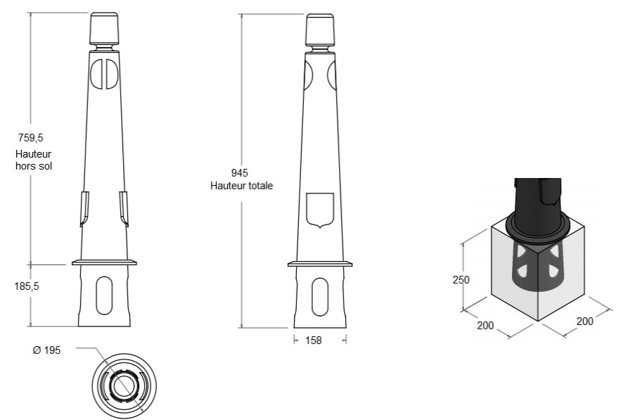 Avec ses 759,5 mm de hauteur hors sol et son diamètre base de 158 mm, elle assure une visibilité optimale tout en préservant la sécurité des piétons.