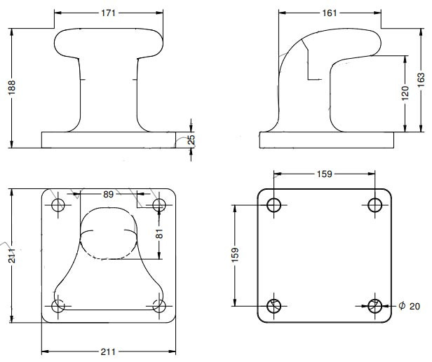 Borne d"amarrage en fonte 260x206x165 6T ref 541731143 quantité 4.